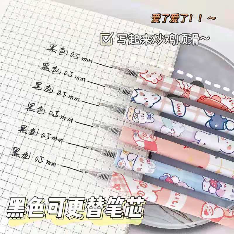 笔ins高颜值学生卡斯兔按动波尔潘少女可爱押圧笔0.5韩版黑色水笔hope兔按动笔【6支全套】