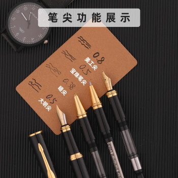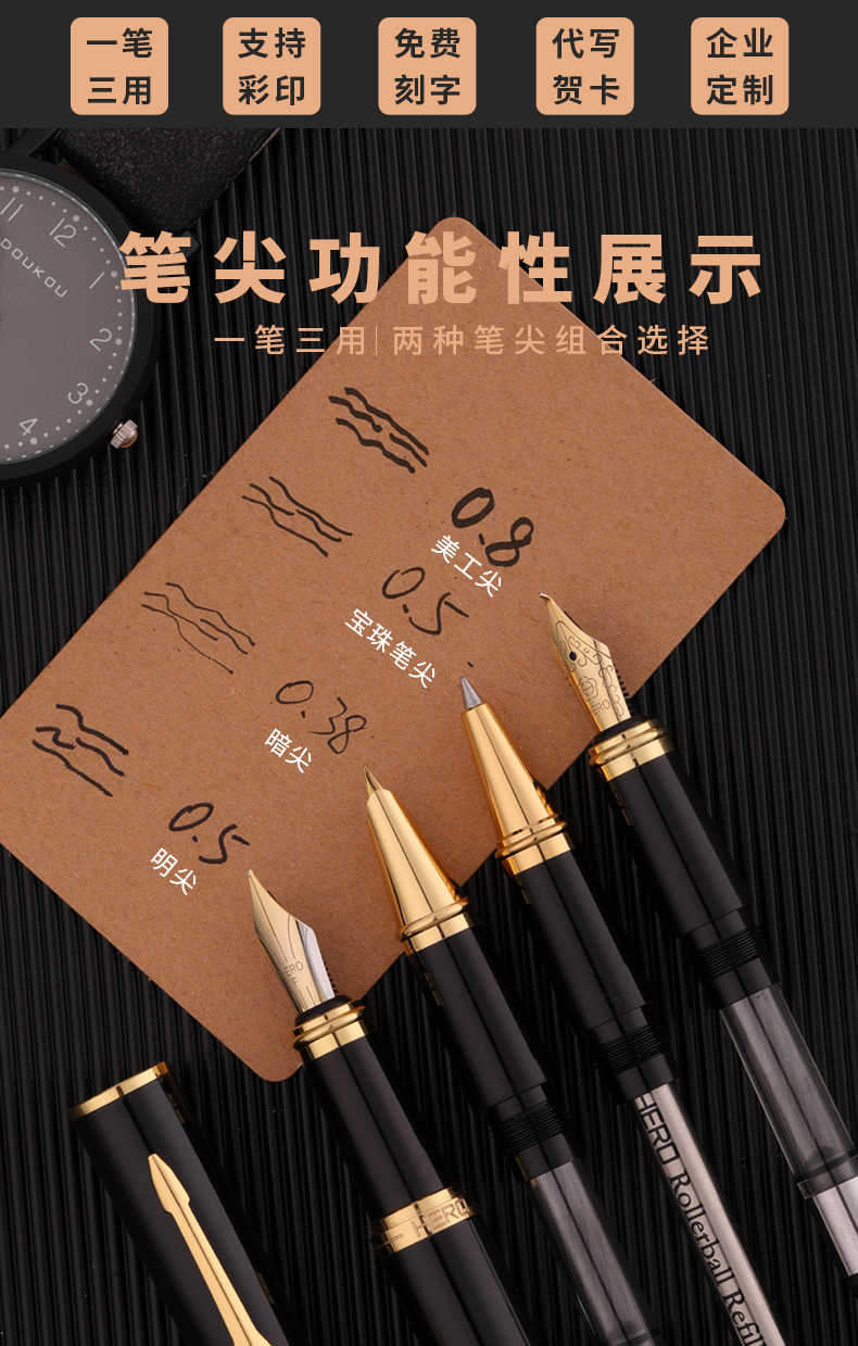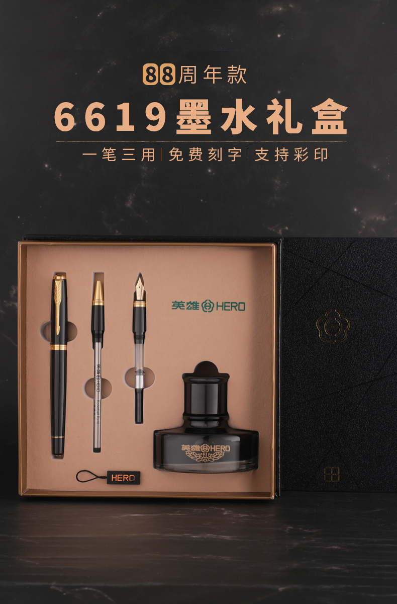 HERO英雄6619万年笔プレゼント先生サイン笔官方商务男士学生练字礼盒装美工弯头免费定制log黒(万年笔0.5+美工弯头0.8+署名笔0.5)0.5 mm官方标配明尖